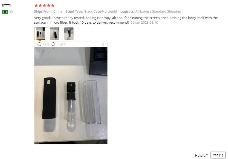 【How to use】1. Spray the cleaner nozzle on the screen at a distance 3.9 inches (10 cm) on the screen.. 2. Gently wipe the microfiber cloth on the bottle to remove stains. Dab the stain on the bottle with a microfiber cloth. 3. After wiping, it is as clean as new.